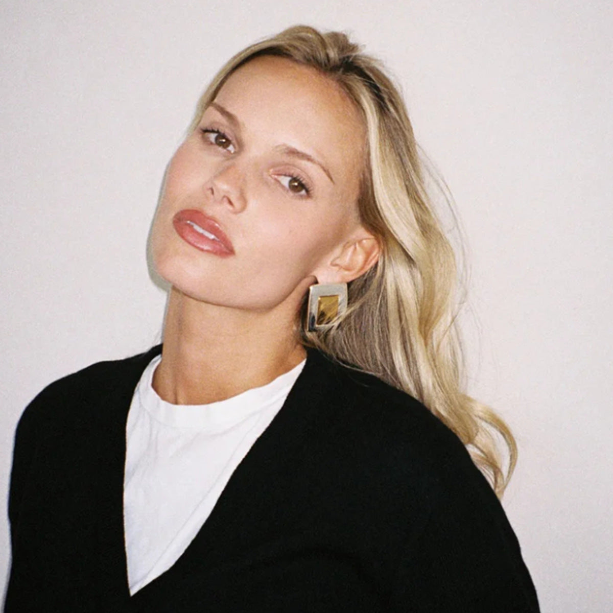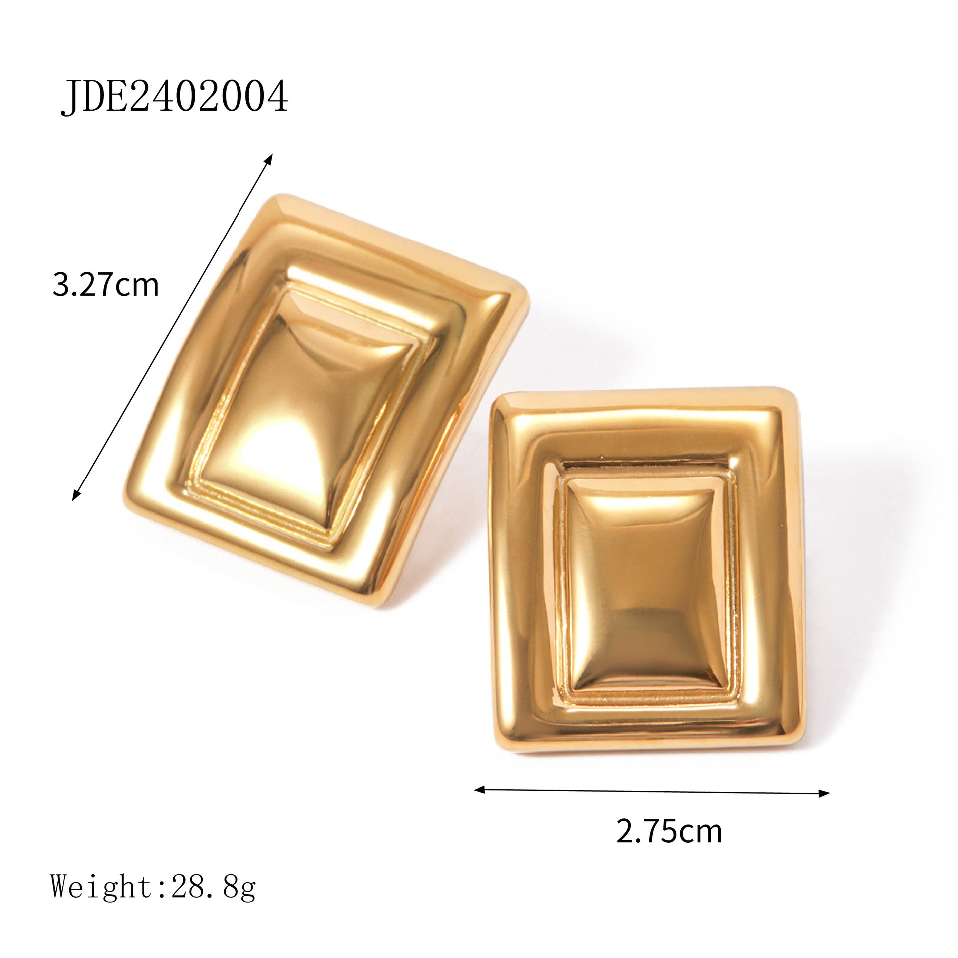 18K Gold Stainless Steel Rectangular Back-shaped Surface Earrings Ins European And American